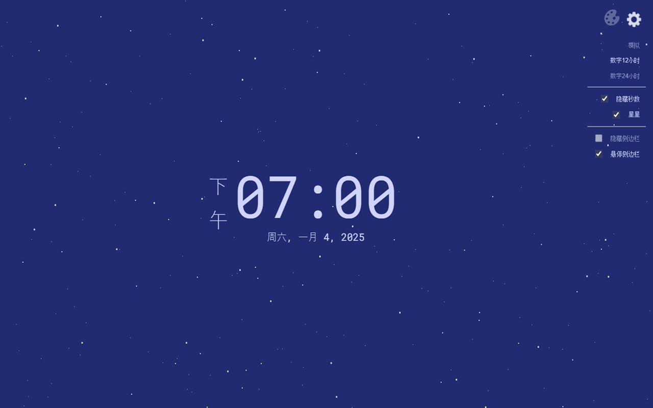 这是一个简单的时钟,可以更改您的新标签。日历时钟、主题颜色、侧边栏V3.2.1- 添加隐藏秒的功能- 添加更改背景颜色的功能- 添加在背景中显示星星的功能- 模拟时钟- 12 小时、24 小时数字时钟- 删除温度框- 添加主题选择器- 添加侧边栏 [显示/隐藏/编辑]V1.1.2- 设计日历时钟- 显示您所在位置的温度