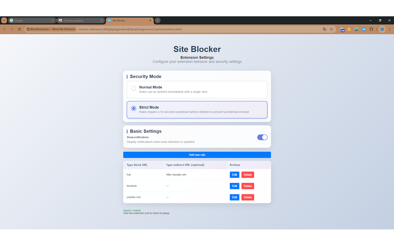 一个简单可靠的工具,用于屏蔽和重定向网站,帮助您保持专注。