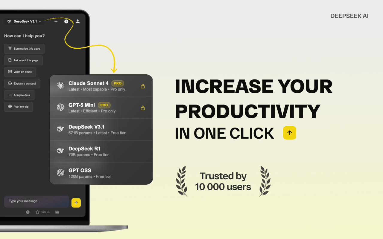 通过 DeepSeek AI Chrome 扩展改变您的浏览体验!这个强大的助手将尖端功能直接带入您的浏览器,使每次互动都变得无缝、信息丰富且引人入胜。