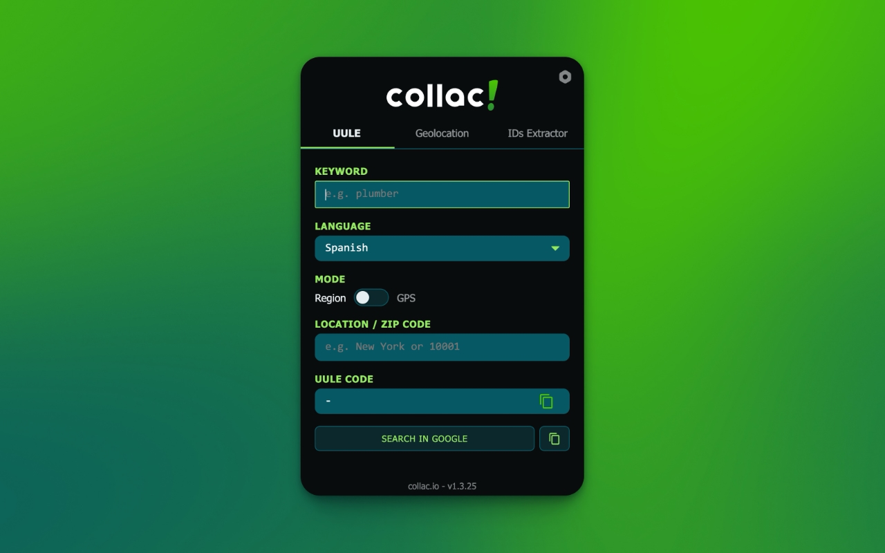- 生成UULE:输入关键字和位置(城市或邮政编码),自动生成相应的UULE参数。