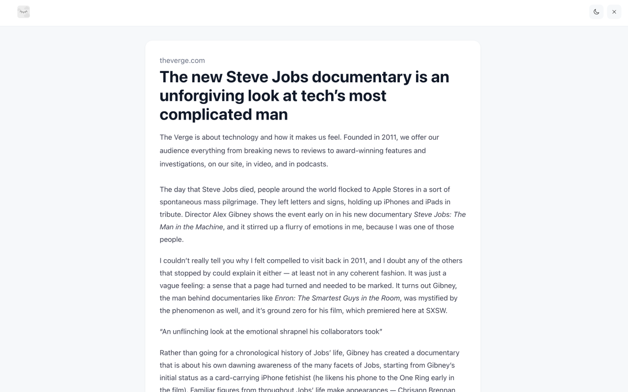 无需设置。没有广告。只是一种更好的网络阅读方式。