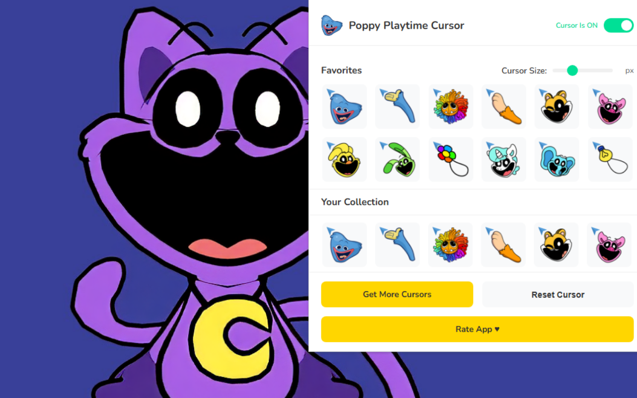 享受超过 100 种自定义光标,包括 Huggy Wuggy、Kissy Missy、Mommy Long Legs 等 - 所有这些光标的设计灵感均来自热门恐怖益智游戏,充满活力、令人毛骨悚然且有趣。