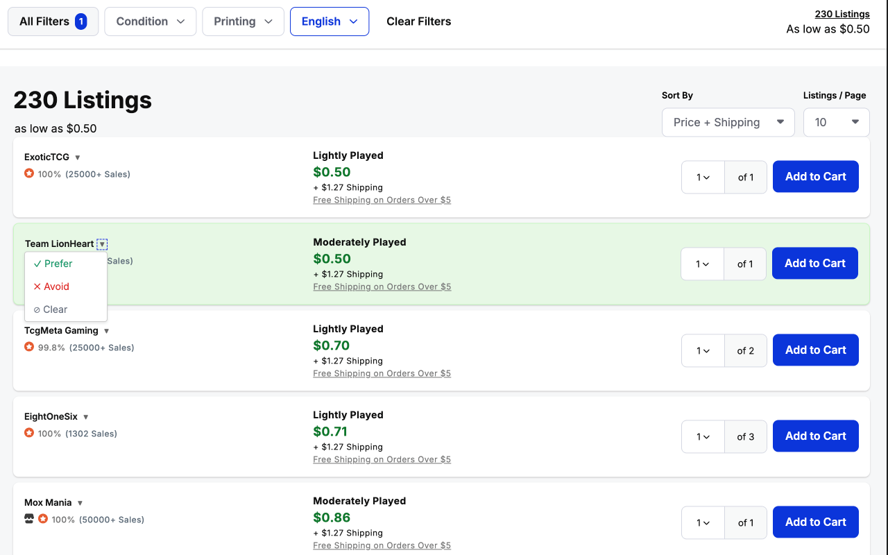 • 干净、不引人注目的用户界面,与 TCGplayer 的设计无缝集成
