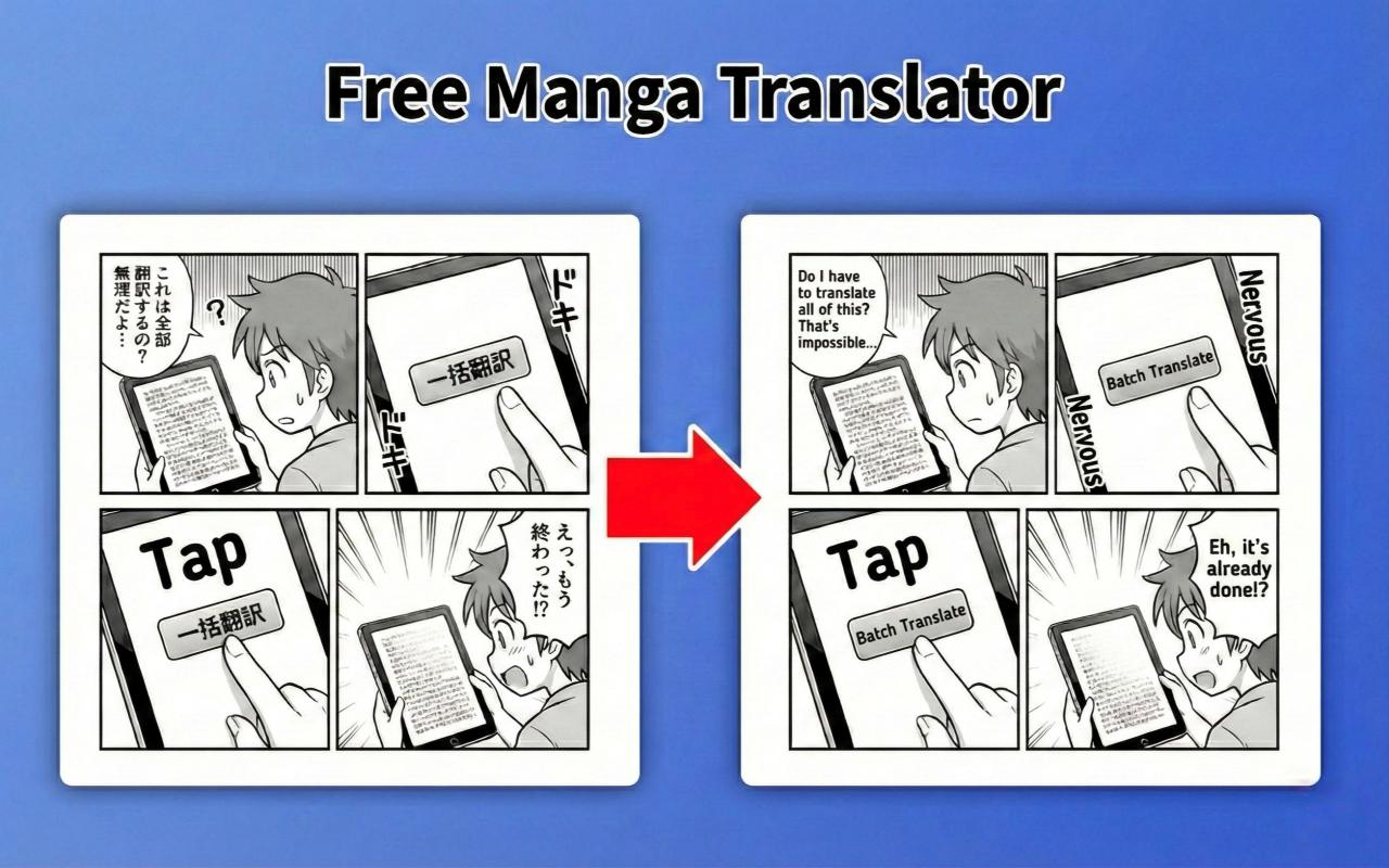 正在寻找最好用的漫画翻译器 (Manga Translator)?我们的免费 AI 插件是翻译日漫 (Manga)、美漫 (Comics)、韩漫 (Manhwa) 和条漫 (Webtoons) 的终极解决方案。无论您是在啃生肉漫画 (Raw Manga) 还是看韩流条漫,这款图片翻译器都能提供即时、高质量的翻译体验。