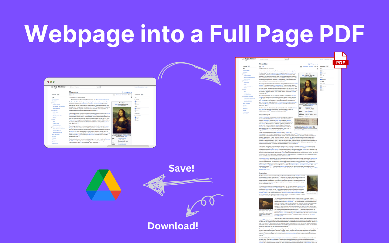 一键将任何网页转换为像素完美、可搜索的 PDF。隐私至上的设计与 Google Drive 集成。
