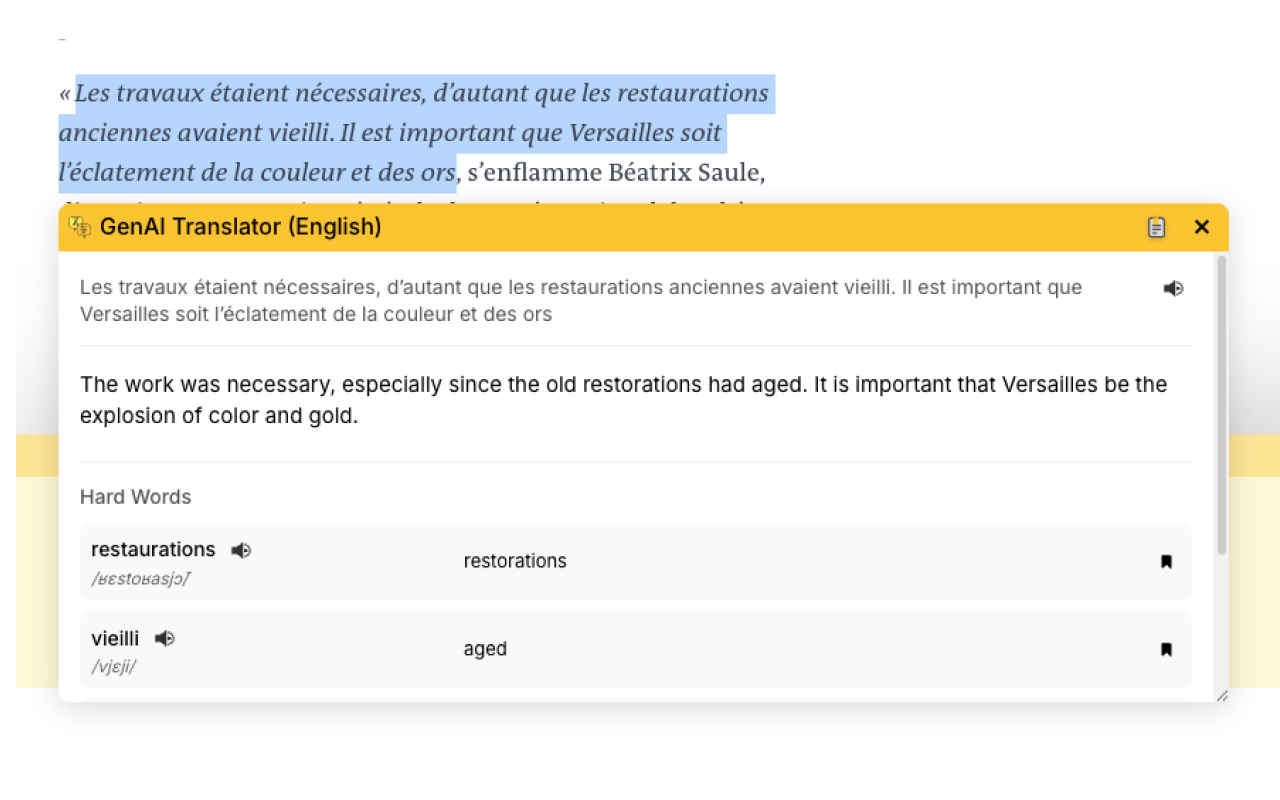- 翻译历史记录:自动保存您的翻译,以便稍后在专用历史记录页面上查看。