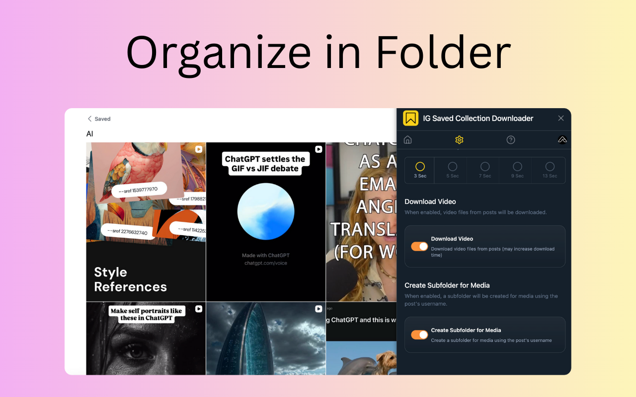 Instagram Saved Collection Downloader 是一个简单的 Chrome 扩展程序,可帮助您下载和备份收藏中保存的帖子。它专为希望以简单的方式组织和保存已保存内容的创作者、营销人员、研究人员和日常用户而设计。