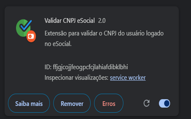用于验证登录 eSocial 的用户的 CNPJ 的扩展。
