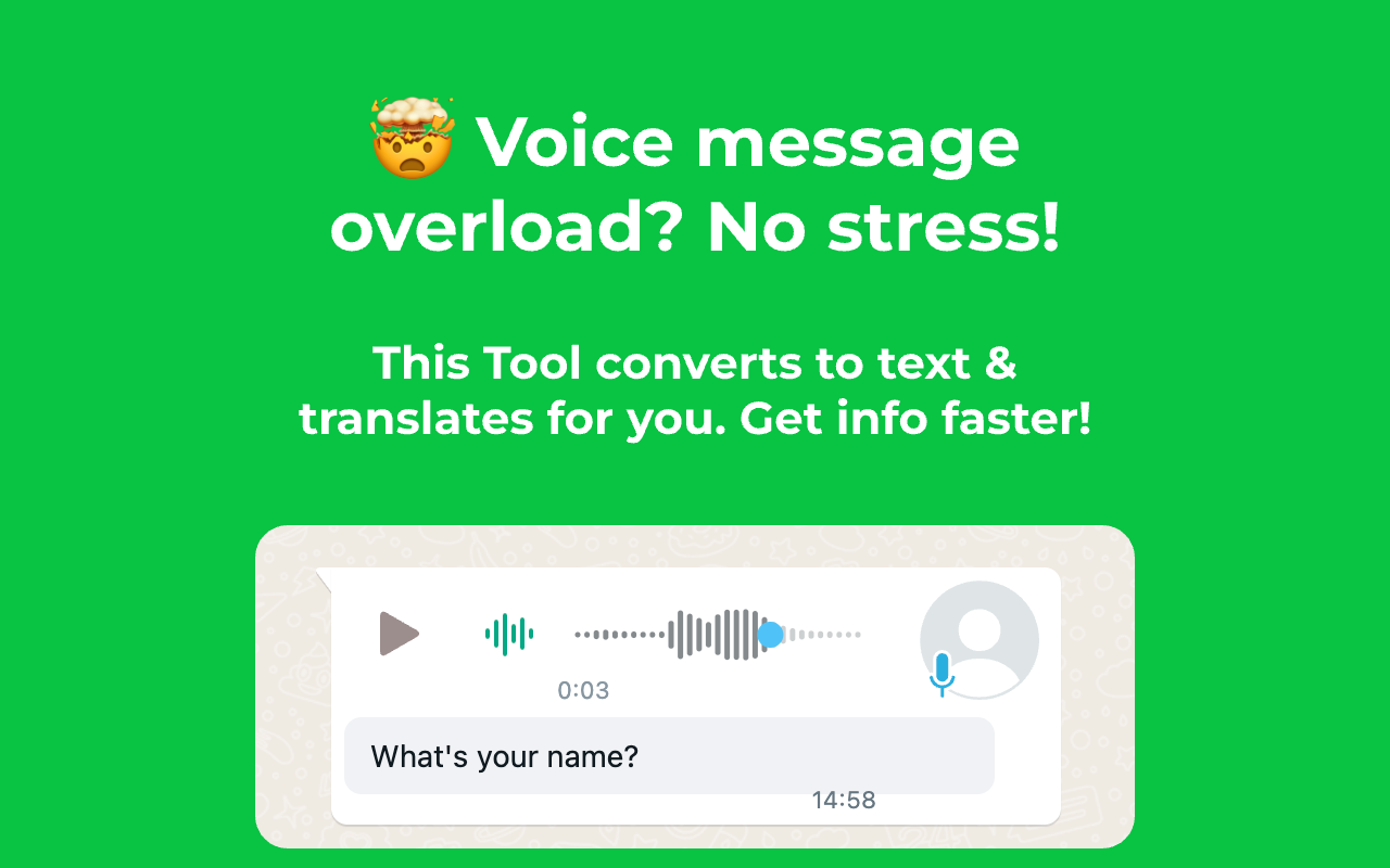 厌倦了一条条地听冗长的 WhatsApp 语音消息吗?🤯 想要快速掌握信息而不打断工作流程?“WhatsApp 语音消息转文本和翻译 - ExtBoost”给您带来了终极解决方案!🚀