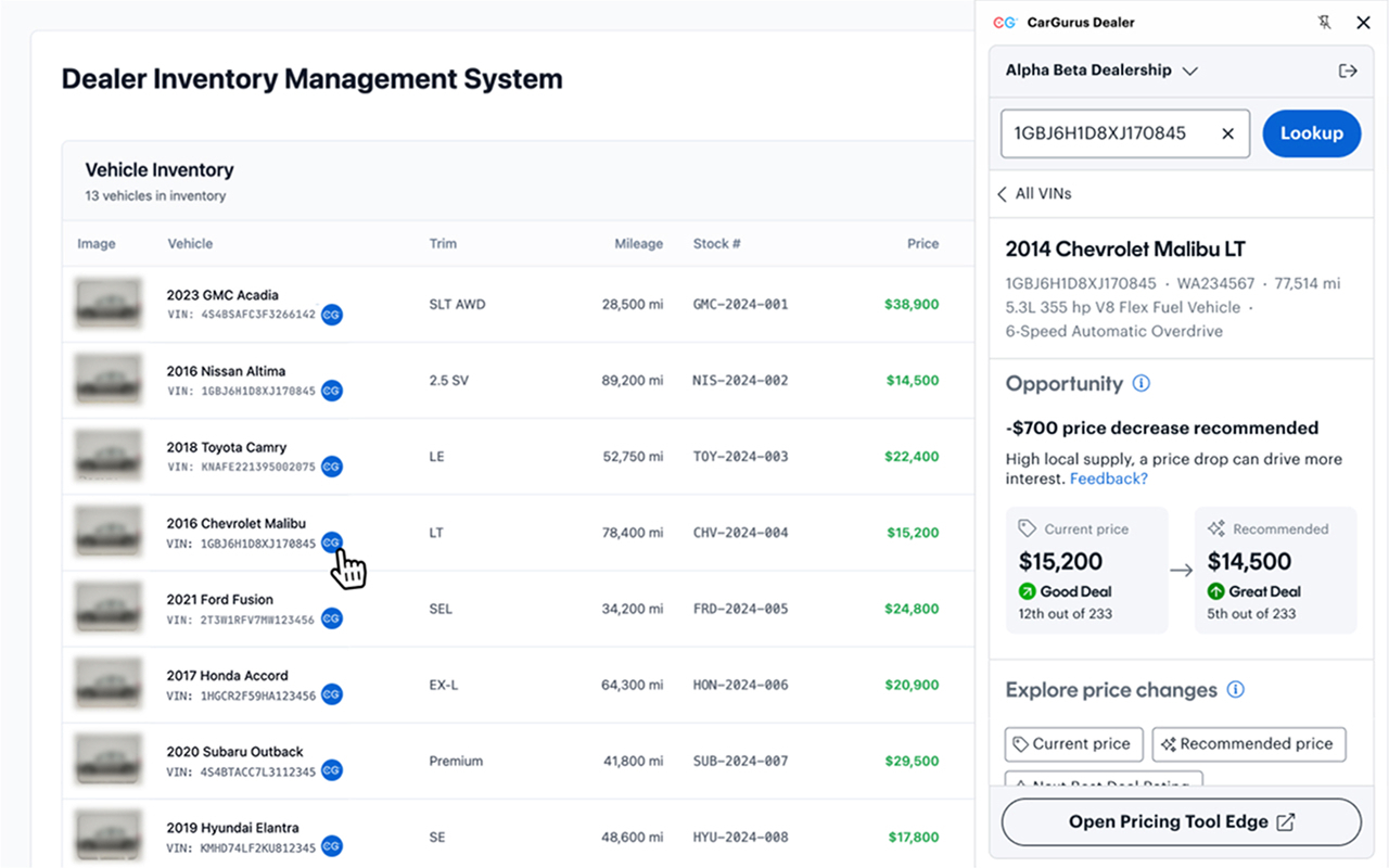 易于使用的扩展,允许 CarGurus 经销商在 CarGurus 经销商仪表板之外工作时访问工具、数据和见解。