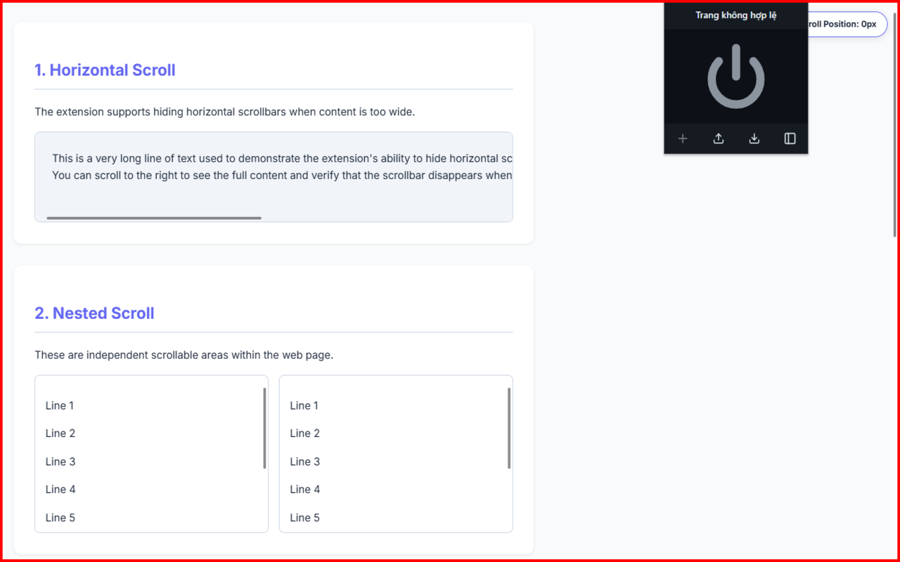 一个简单的 Chrome 扩展程序,可隐藏大多数网站上的滚动条,使界面更整洁。包含弹出界面,可轻松开关功能。功能:自动隐藏滚动条、保留滚动功能、便捷的切换界面、轻量化设计。 注意:在某些复杂网站(如使用自定义滚动系统的网页应用)上可能无法完美运行。优先保证标准页面的稳定性。