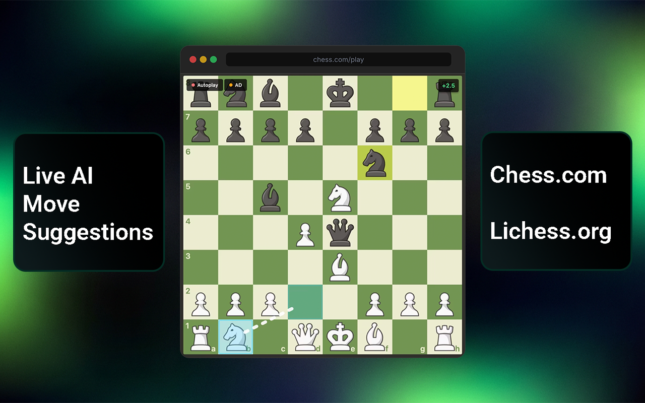 ChessHelper.ai 是您的人工智能国际象棋教练,可直接在 Chess.com 和 Lichess.org 上实时分析棋局。