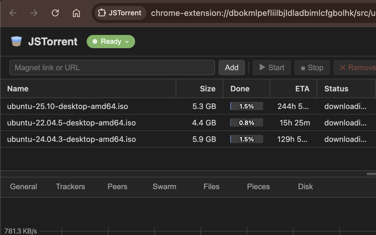 JSTorrent 是一款适用于 ChromeOS、Android、Windows、Mac 和 Linux 的跨平台 BitTorrent 客户端。
