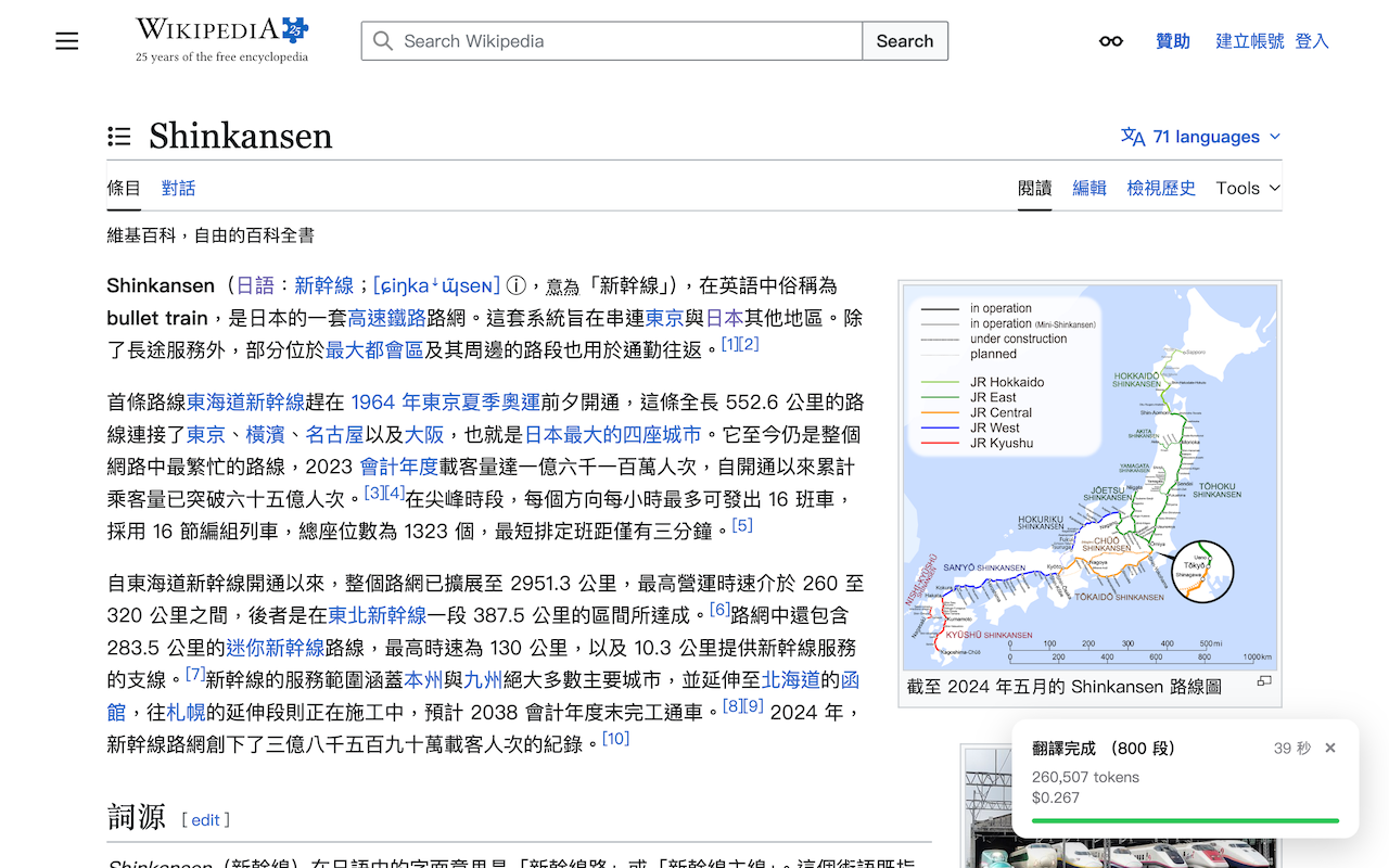 Shinkansen 是一款注重隐私的网页翻译扩充功能,使用Google Gemini API 将外语网页翻译成台湾繁体中文。