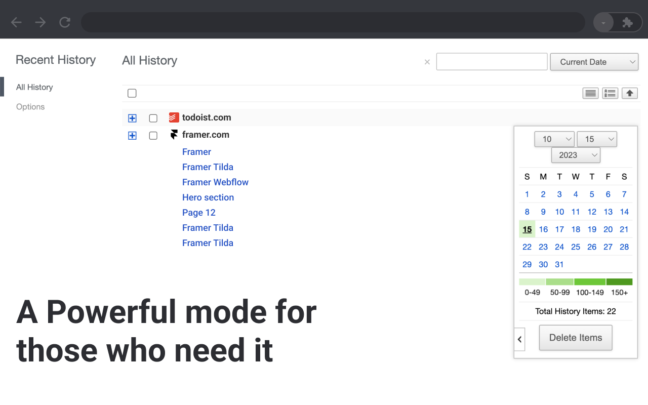 本扩展可以在一个弹窗中显示你的最近访问历史、最近关闭的标签页、最常访问的页面和最近添加的书签。