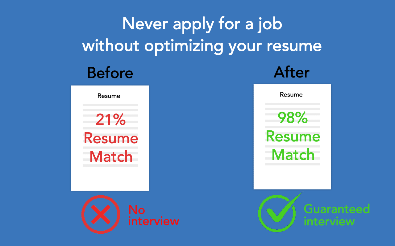 获得 0-100 的即时匹配分数,评估您的简历与职位描述的匹配程度。这将帮助您快速筛选数千个职位并确定与您最相关的职位,从而为您节省大量时间,以便您可以将精力集中在申请最重要的职位而不是不太相关的职位上。