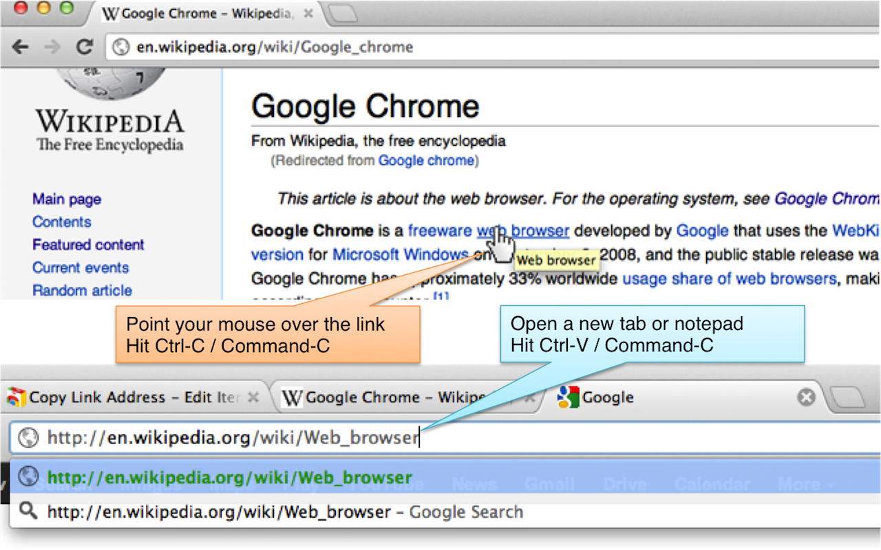 无需右键单击即可复制链接地址。只需将鼠标悬停在链接上并按 Ctrl-C / Cmd-C!
