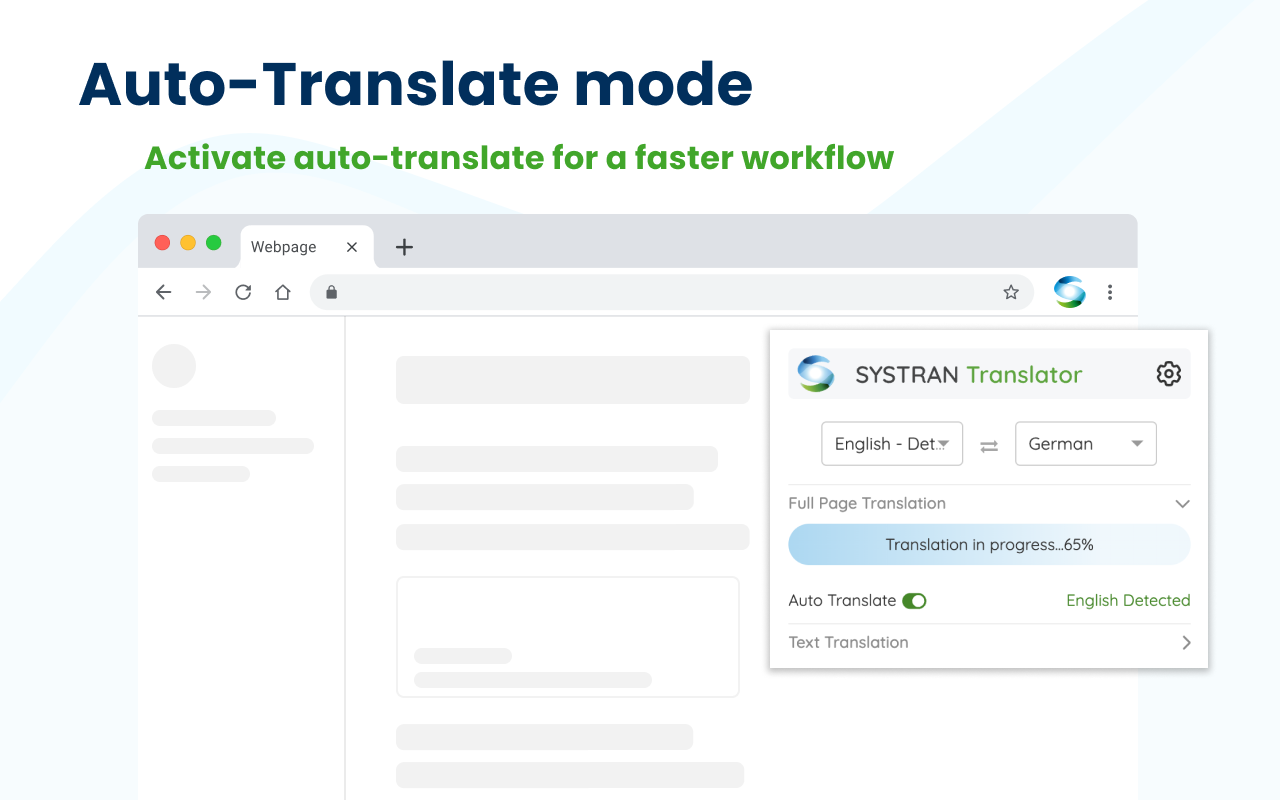 选择页面上的任何文本,然后单击 SYSTRAN 翻译器图标即可立即查看翻译。