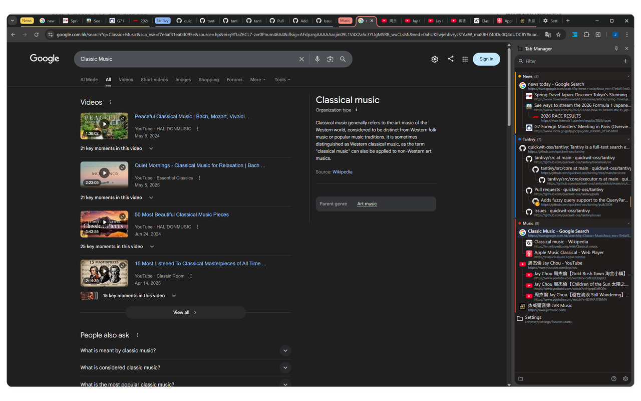 • 搜索 - 按标题或 URL 即时筛选标签页;包含书签(最多30个结果)