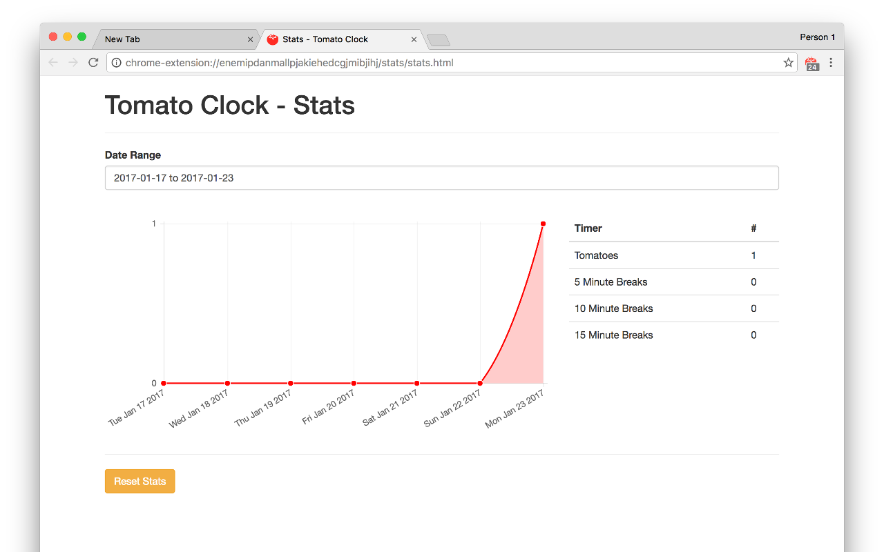 您可以在扩展页面中自定义番茄和休息的长度。该扩展程序使用默认的浏览器通知系统,并伴有声音,让您知道计时器何时结束。该扩展还具有统计功能,用于跟踪您完成了多少个西红柿。