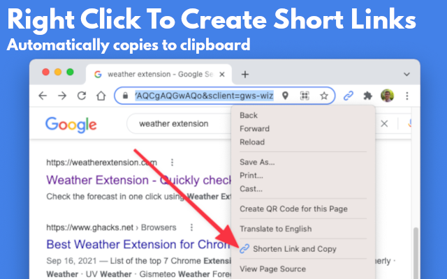 ✨ 只需轻轻一按,您当前的页面 URL 就会被缩短并自动复制到剪贴板,使共享变得快速、轻松。您还可以右键单击任何页面或链接以立即缩短它 - 没有新选项卡,没有中断。