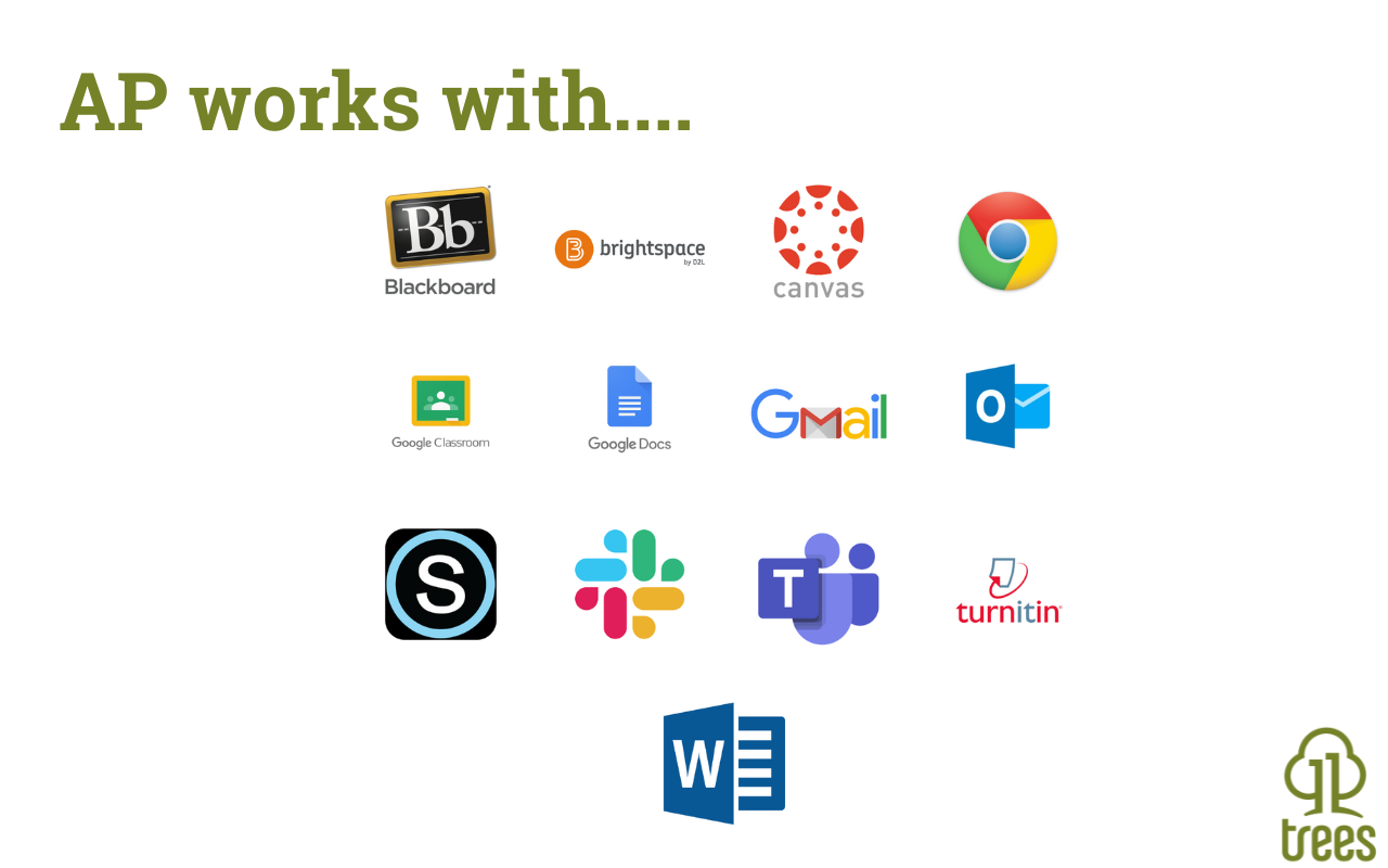 AP 是卓越反馈的平台。共享评论库、教学大纲内容、学校政策和细则,以便在您熟悉和喜爱的 EDU 平台上使用:Canvas、Google Docs、Microsoft Word、D2L、Moodle 等。你可以: