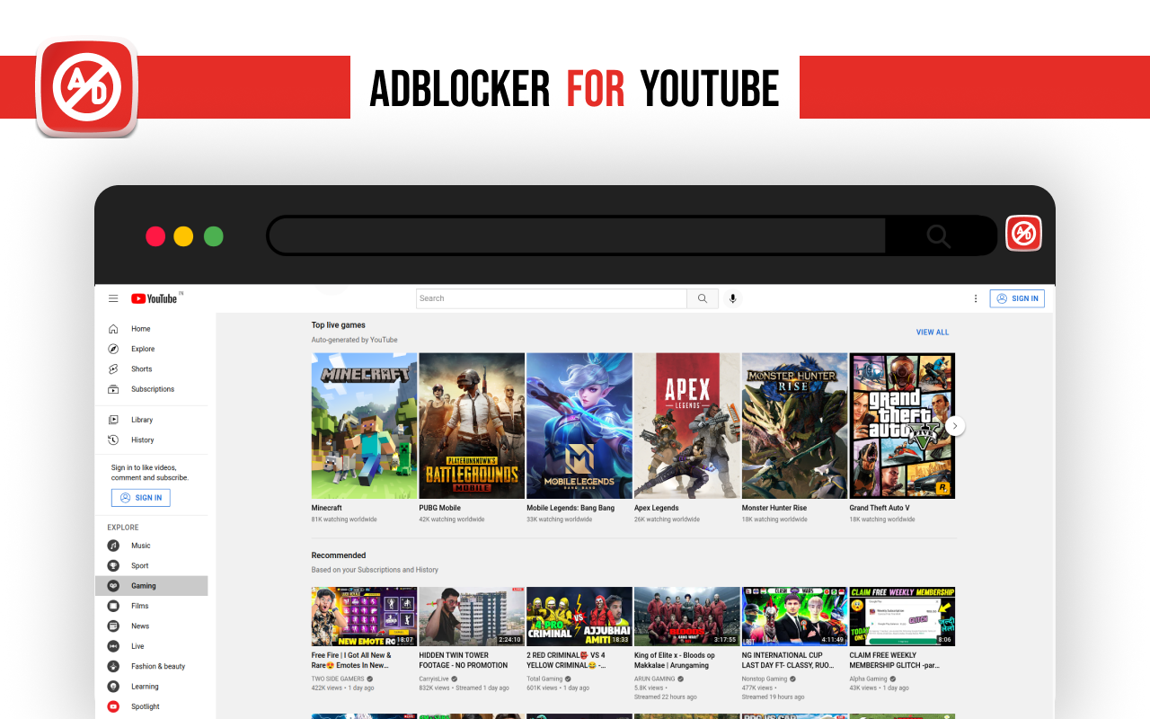 适用于YouTube、Hotstar、JioCinema等的广告拦截器。