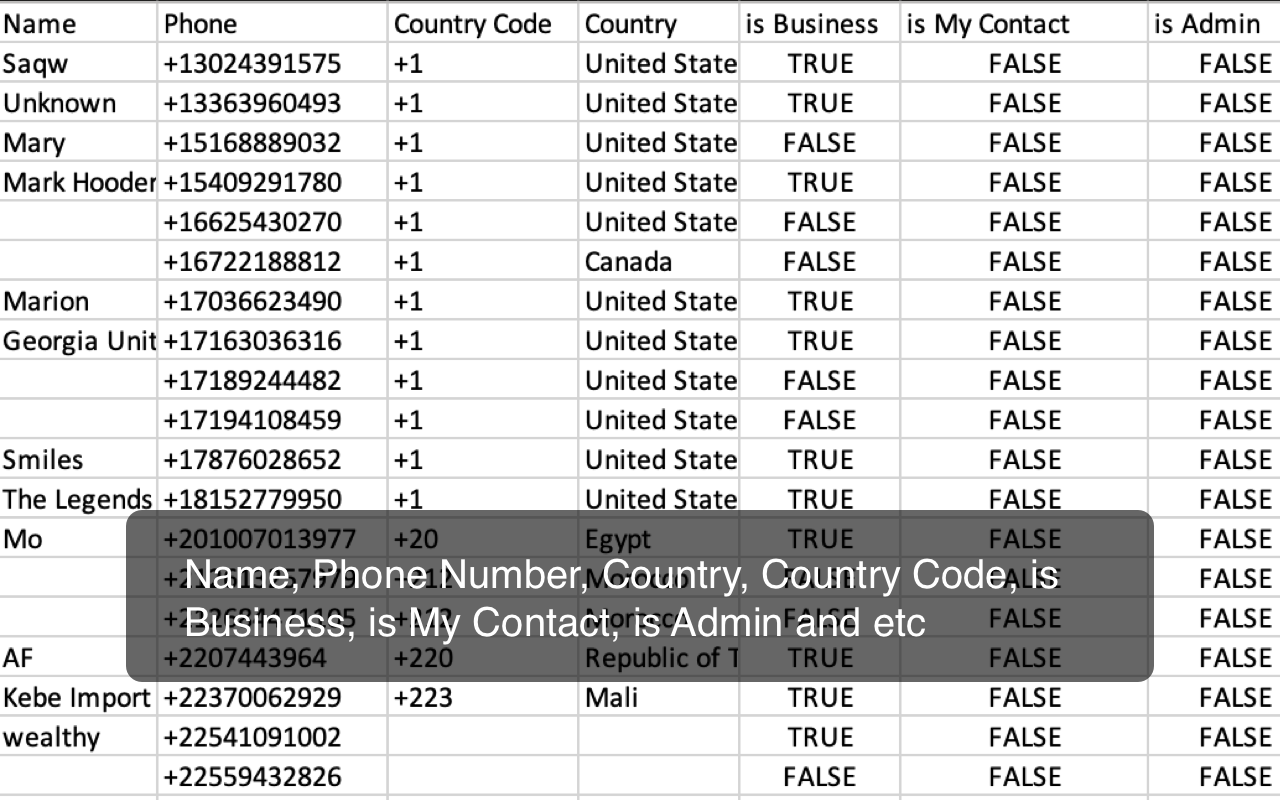 ✓ 提取用户个人资料,包括姓名、电话号码、国家、国家代码、是公司、是我的联系人、是管理员等。