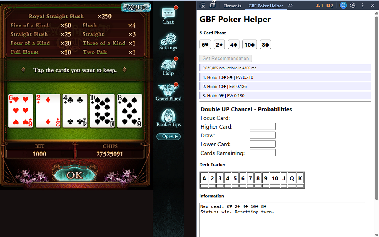 此扩展是出于个人好奇心而构建的,同时探索 Granblue Fantasy 赌场并研究 GBF 扑克策略指南。