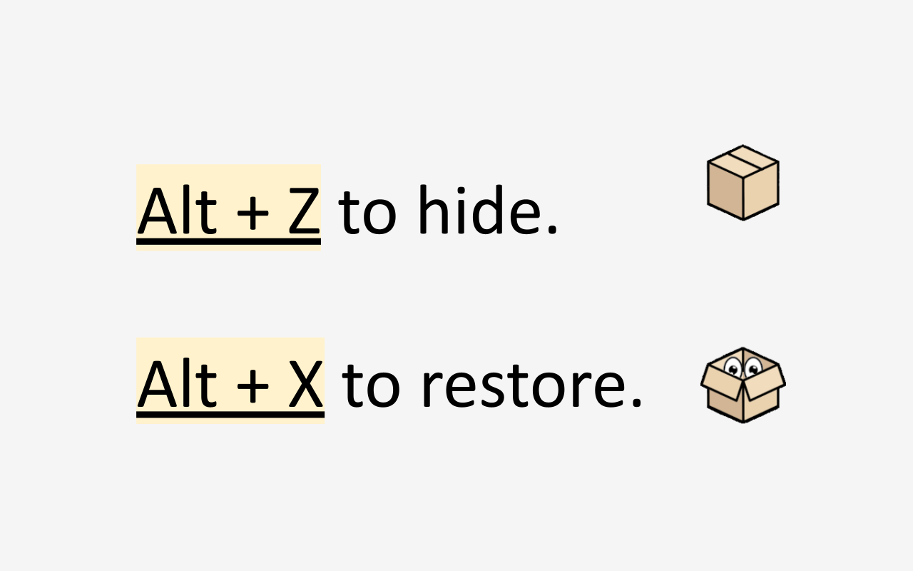 浏览器选项卡的紧急按钮。 Alt+Z 隐藏,Alt+X 恢复。就是这么简单。