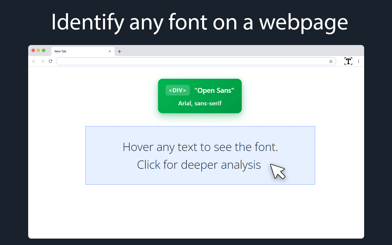 在线查找字体消除了与字体识别相关的猜测工作,从而增强了您的浏览体验。无需再搜索代码或使用第三方服务;字体检测器可无缝集成到 Chrome 浏览器中,让检测功能触手可及。