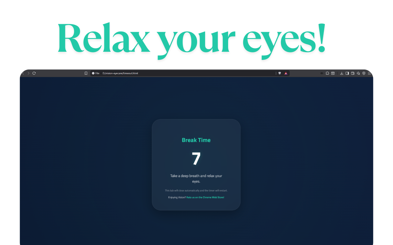 VISION Eyecare 20-20-20 是一款简单有效的应用程序,可帮助您减轻眼睛疲劳和干燥。它每 20 分钟提醒您短暂休息并照顾您的眼睛。使用 20-20-20 规则。每 20 分钟休息 20 秒,并将目光集中在至少 20 英尺外的物体上。版本 2 升级: - 改进的用户界面、更平静的视觉效果可帮助您放松。 - 每休息 20 分钟后自动重新启动。 - 停止按钮以进行更多控制。