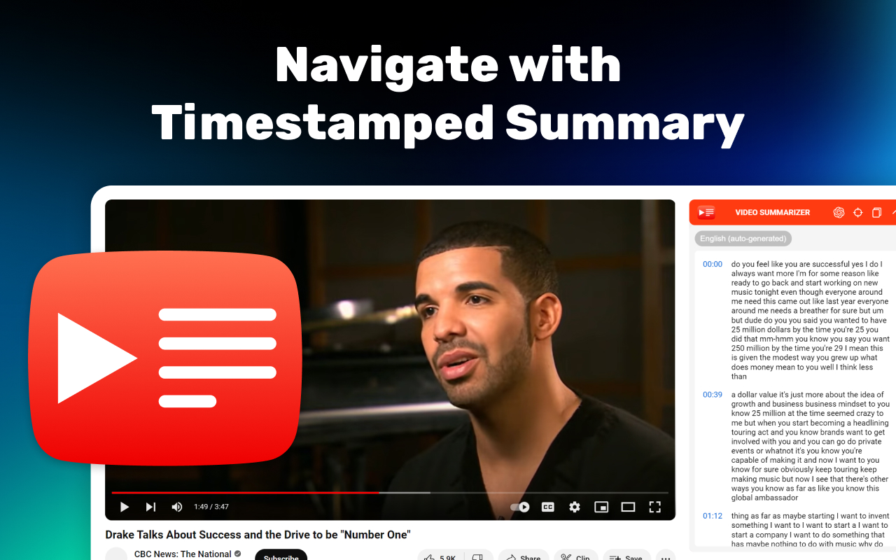 💡 只需安装我们的扩展。它将自动为您观看的任何视频生成简明摘要。