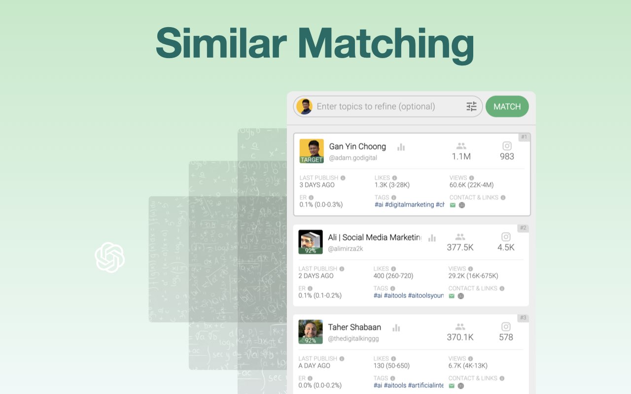 10 秒内找到 YouTube 频道电子邮件。每月获得一个免费配额。在人工智能机器人的支持下,我们从相关社交媒体网站和公开信息收集有用的指标和电子邮件地址。对于营销:我们的电子邮件查找器可帮助您发现有影响力的人并促进您的社交媒体活动。销售:我们的电子邮件查找器可让您随时随地收集潜在客户并增加销售额。