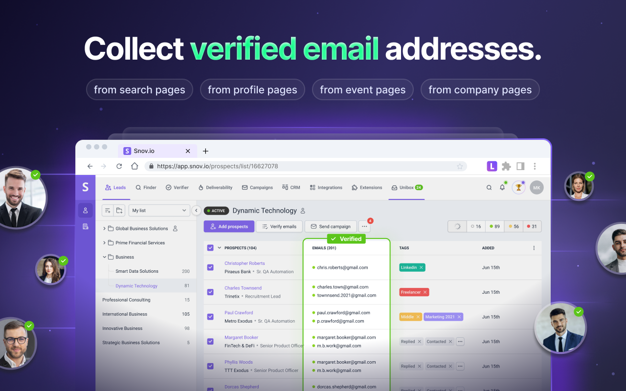 从职业社交平台中高效查找和收集潜在客户。用优质的 B2B 邮箱联系人填充您的销售漏斗,助力业绩增长。